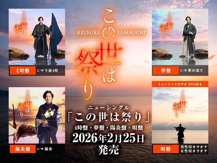 ニューシングル「この世は祭り」発売決定!!山内惠介待望のニューシングル「この世は祭り」が2月25日に発売されることが決定いたしました。